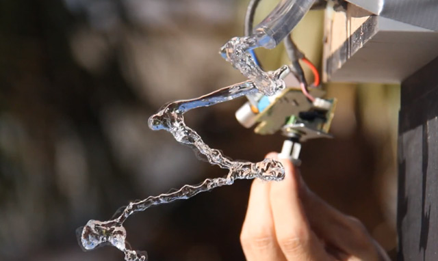 Set up your camera and switch it to 24 fps. The higher the shutter speed the better the results. But also keep in the mind that the higher your shutter speed, the more light you need. Run an audio cable from your computer to the speaker. Set your tone generating software to 24hz and hit play.Turn on the water. Now look through the camera and watch the magic begin. If you want the water to look like it’s moving backward set the frequency to 23hz. If you want to look like it’s moving forward in slow motion set it to 25hz.