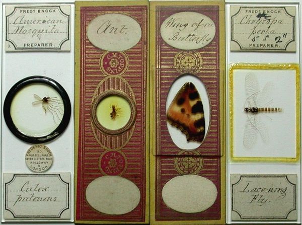 “By the later 1800s, with the advent of an expanding middleclass and the burgeoning popular interest in the Natural Sciences, it was not unusual for households to have a well used microscope and a little “cabinet of curiosities”. Some, as well as purchasing commercially mounted examples, found pleasure in collecting specimens and making their own slides. Many people of the times could give the common and Latin names, and an account of the habits, for most of the plants, insects, and other living creatures both small and large in the vicinity of their town and countryside. Holiday excursions to the seashore became a popular pastime, being seen as wonderful opportunity for collecting unusual specimens for study. Public lectures, classes and demonstrations were held, and numerous societies and clubs of interested “amateur naturalists” met regularly. During the heyday of the Victorian period, the microscope and it’s attendant collection of mounted objects were not viewed as just a means to an education, or scientific tools for the laboratory, but as an interesting, wondrous, and delightful entertainment.”